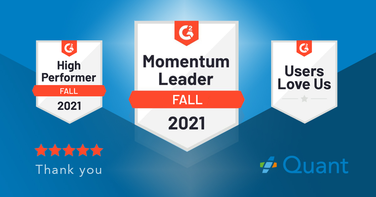 Máme velkou radost, že rostoucí zájem o Quant a spokojenost našich zákazníků ocenili na G2.com v rámci podzimních reportů a stali jsme se poprvé Momentum Leaderem v Retail Management Systems kategorii.