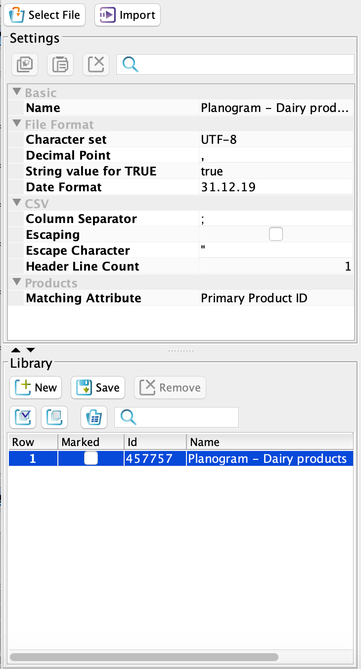 The option Import CSV Planogram allows a planogram from a CSV file to be imported to Quant. If you have products saved in a CSV file, including their accurate position in the planogram, the following procedure allows a planogram to be created quickly and easily based on this information.