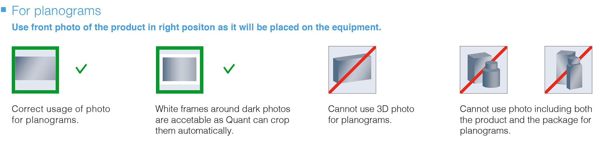 Die Mehrheit der Hersteller lässt ihr Produktportfolio zu Marketingzwecken fotografieren. Obwohl solche Fotos in Quant importiert werden können, sind sie meistens nicht für Planogramme geeignet.