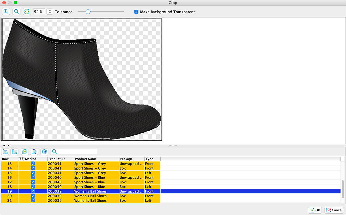 Wenn Sie Fotos haben, die beschnitten werden müssen, hat Quant Werkzeuge, die diese Arbeit voranbringen. Dies betrifft insbesondere das automatische Zuschneiden und Entfernen von Hintergründen bei Produkten mit unregelmäßigen Formen. Solche Produkte beinhalten in der Regel einen Hintergrund, der dann in Planogrammen dargestellt wird. Das Werkzeug ist in der Lage, die Kanten des Produkts zu erkennen und das Bild so zu beschneiden, dass es das Produkt vom restlichen Teil des Bildes trennt.