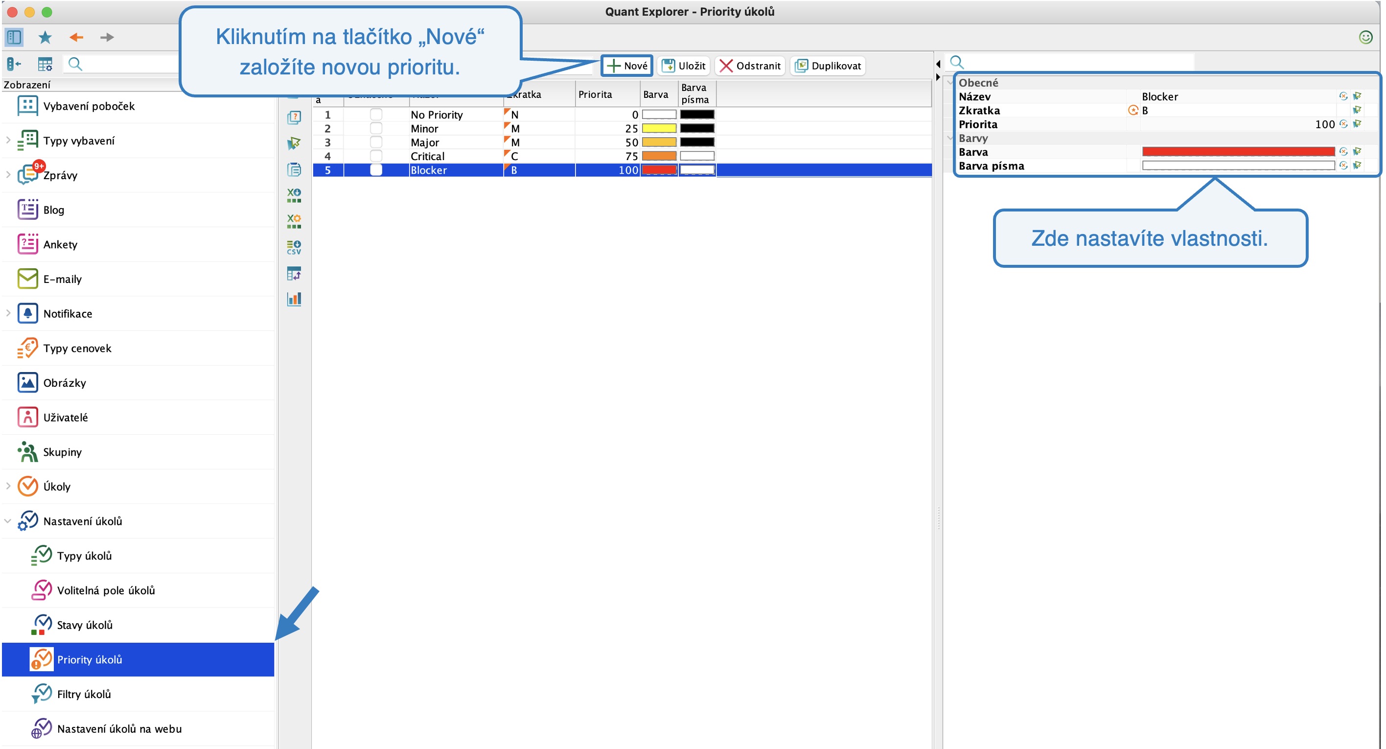 - Haga clic en el botón Nuevo, en Configuración de tareas / Prioridades de tareas.