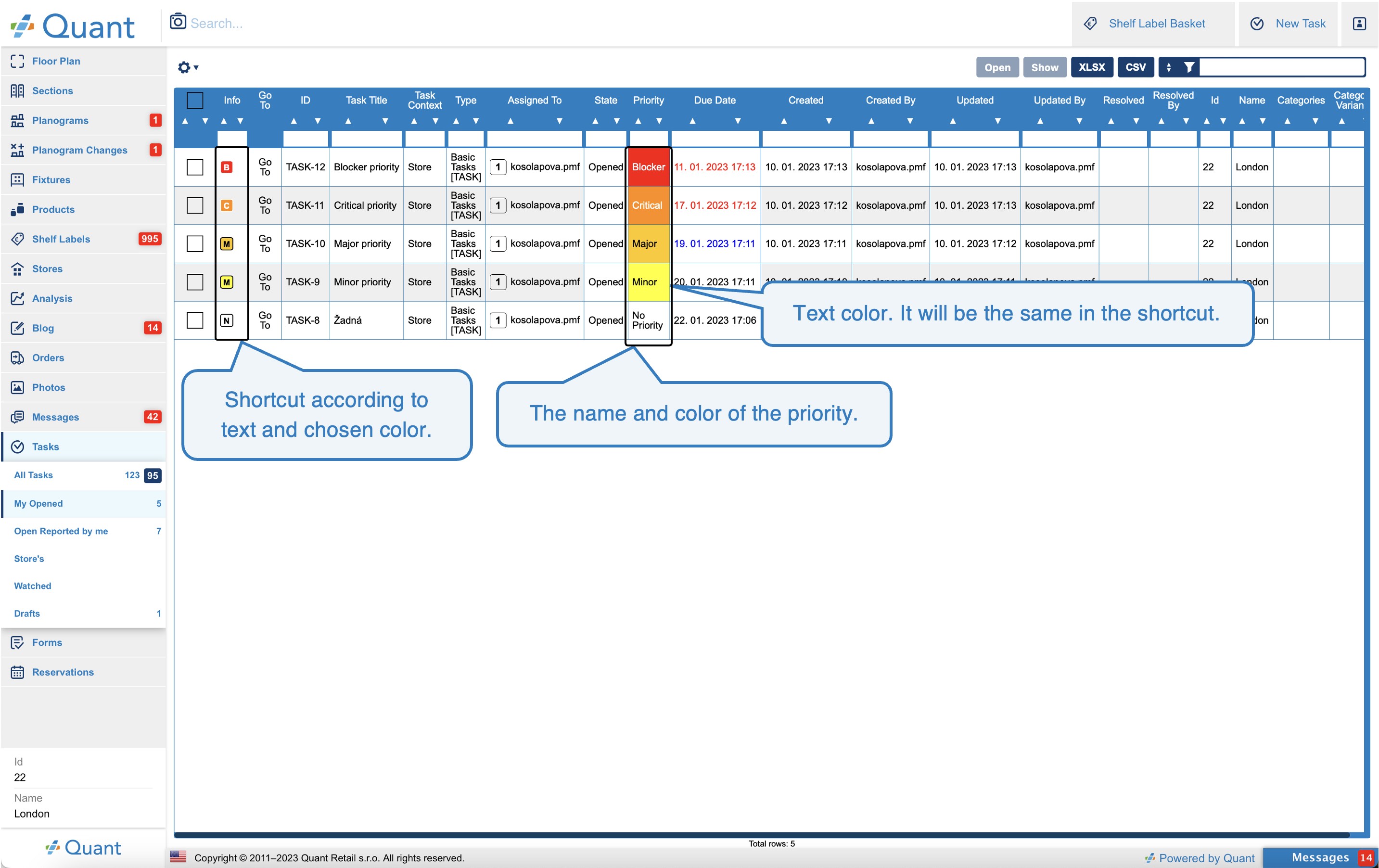 - Color: Determina el color del icono de prioridad en la web. En nuestro ejemplo, la prioridad más importante se muestra en rojo. Por ejemplo, la tarea menos importante aparecerá en blanco. Sin embargo, puede elegir el color que desee.