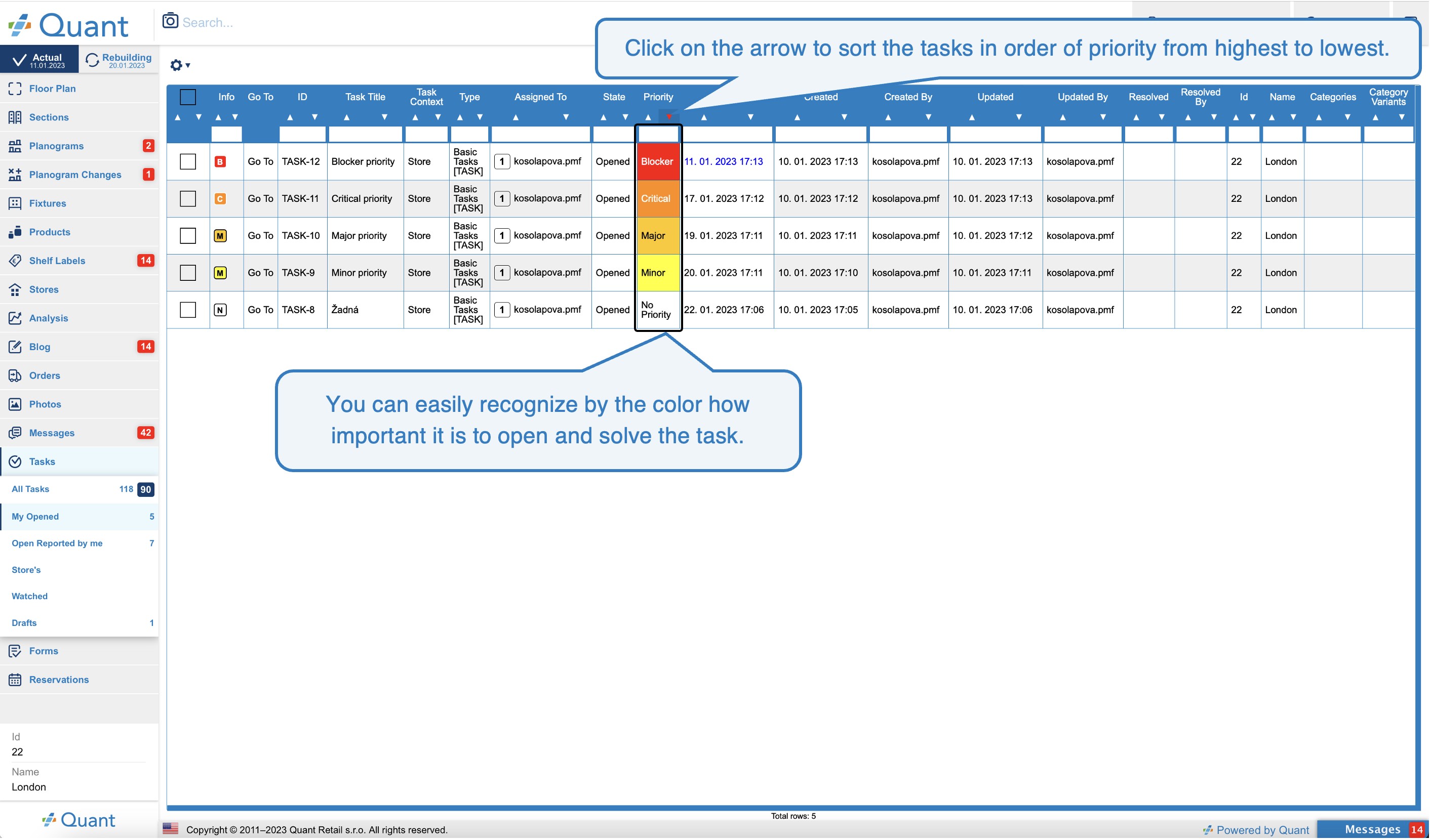 Las Prioridades de tareas se utiliza para determinar el nivel de importancia de una tarea en particular. La priorización ayuda al usuario a navegar por las tareas más fácilmente y a comprender la importancia de cada una de ellas en un momento dado.