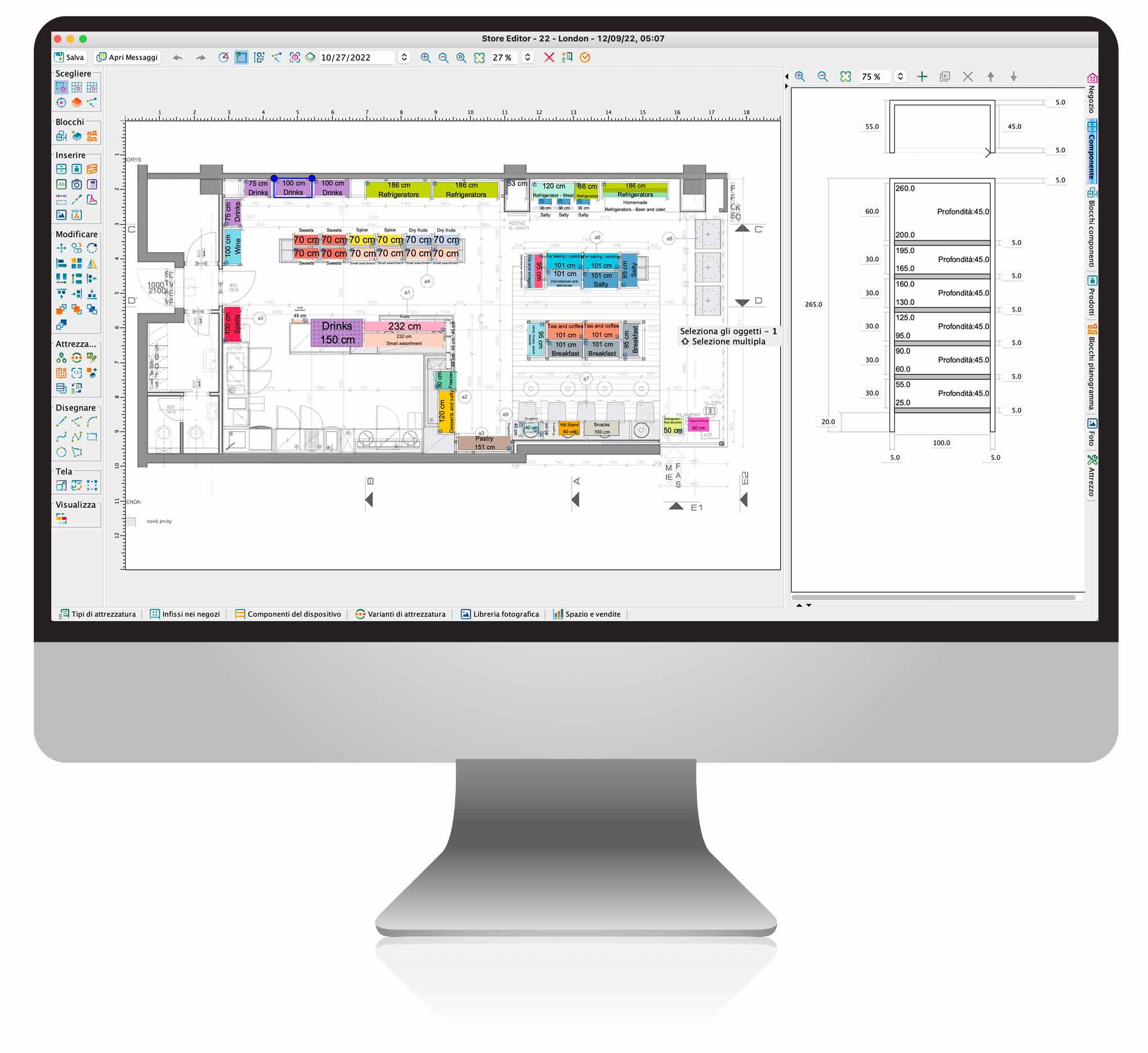 Dopo aver posizionato le categorie, possiamo procedere alla creazione dei planogrammi. Le informazioni necessarie sono le specifiche tecniche dell'attrezzatura che abbiamo a disposizione.
